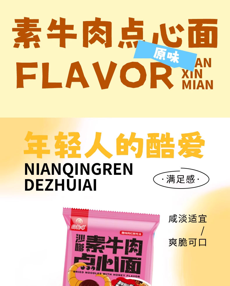 好趣味沙嗲素牛肉干脆面点心面原味蜜汁干吃方便面干拌小零食