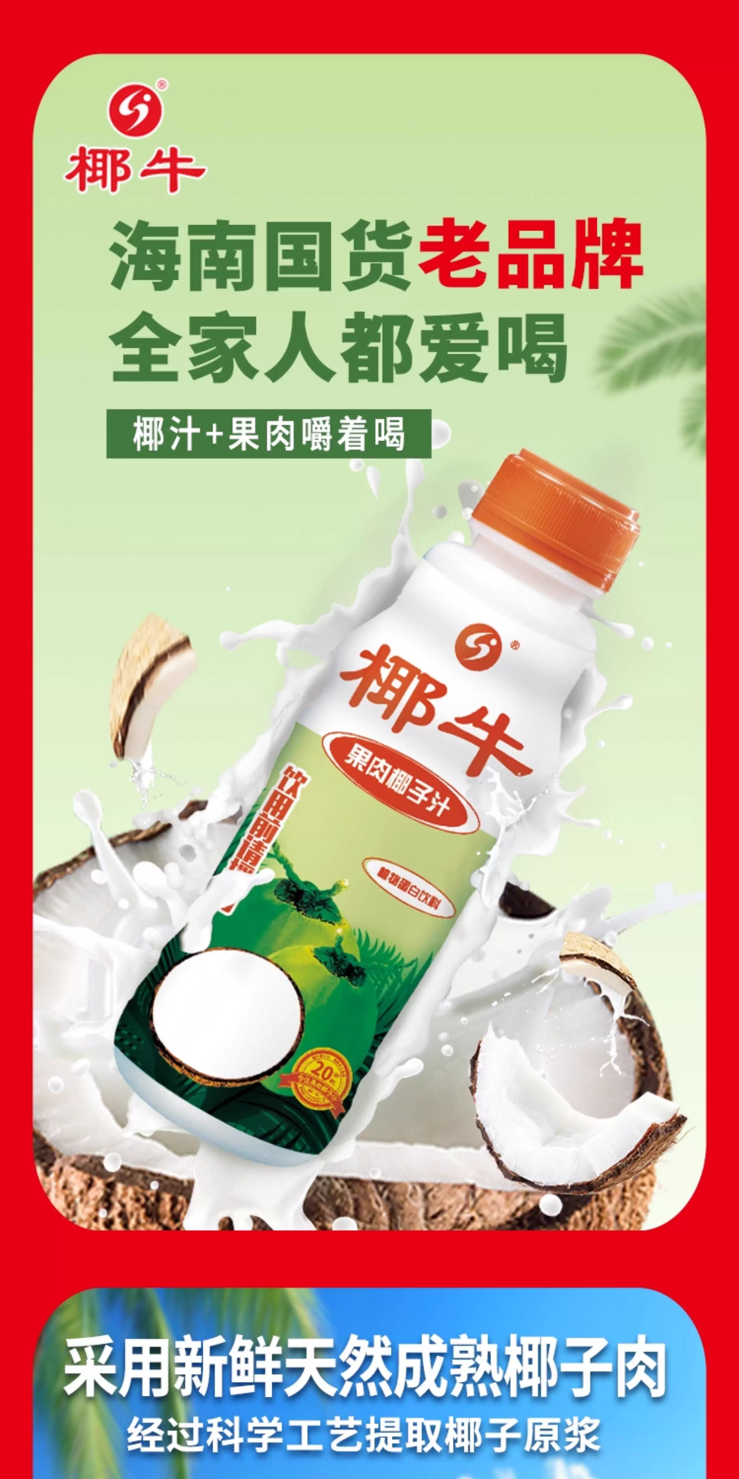 椰牛果肉椰子汁纯天然椰子水电解质生榨正宗海南椰子汁旗舰店
